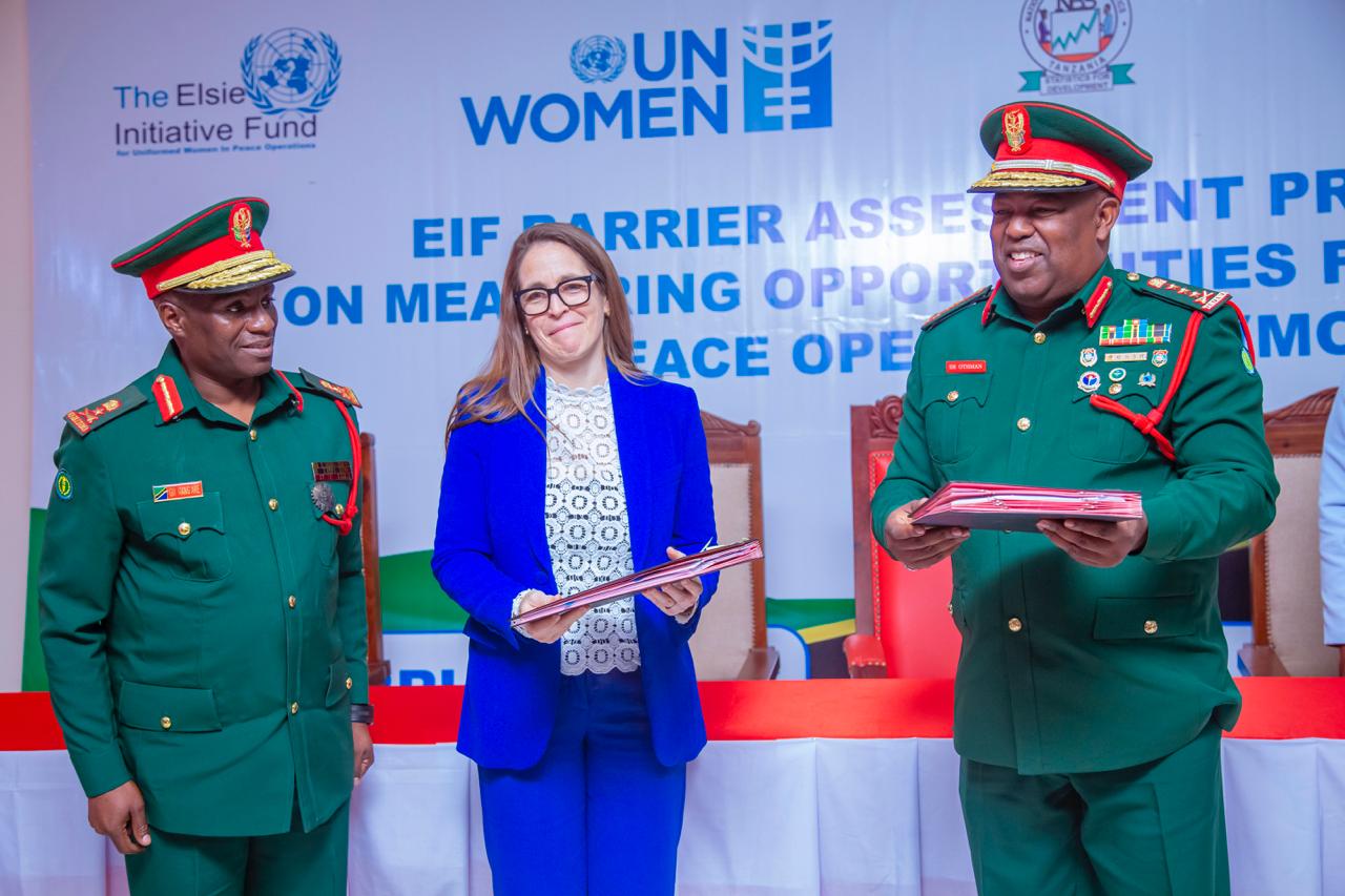 The signing ceremony of the Memorandum of Understanding (MoU) was officiated by the Chief of Staff of the TPDF, Lieutenant General Salum Haji Othman. The agreement marks the implementation of the Measuring Opportunities for Women in Peace Operations (MOWIP) project, funded by the Elsie Initiative Fund.